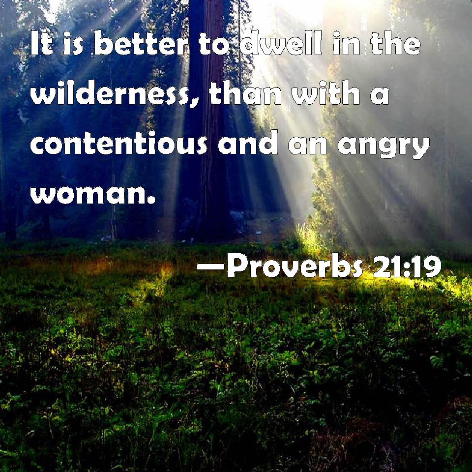 Proverbs 21:19 It is better to dwell in the wilderness, than with a contentious and an angry woman.