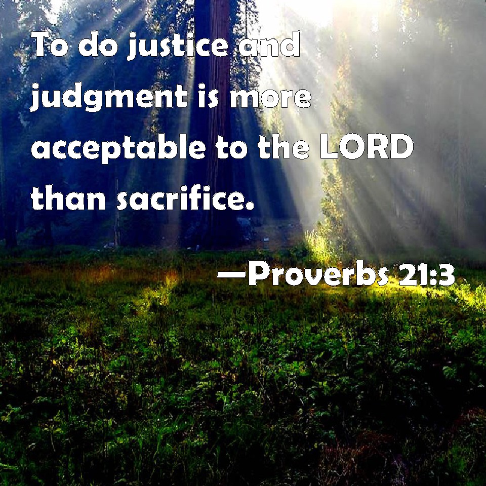 Proverbs 21:3 To do justice and judgment is more acceptable to the LORD than sacrifice.