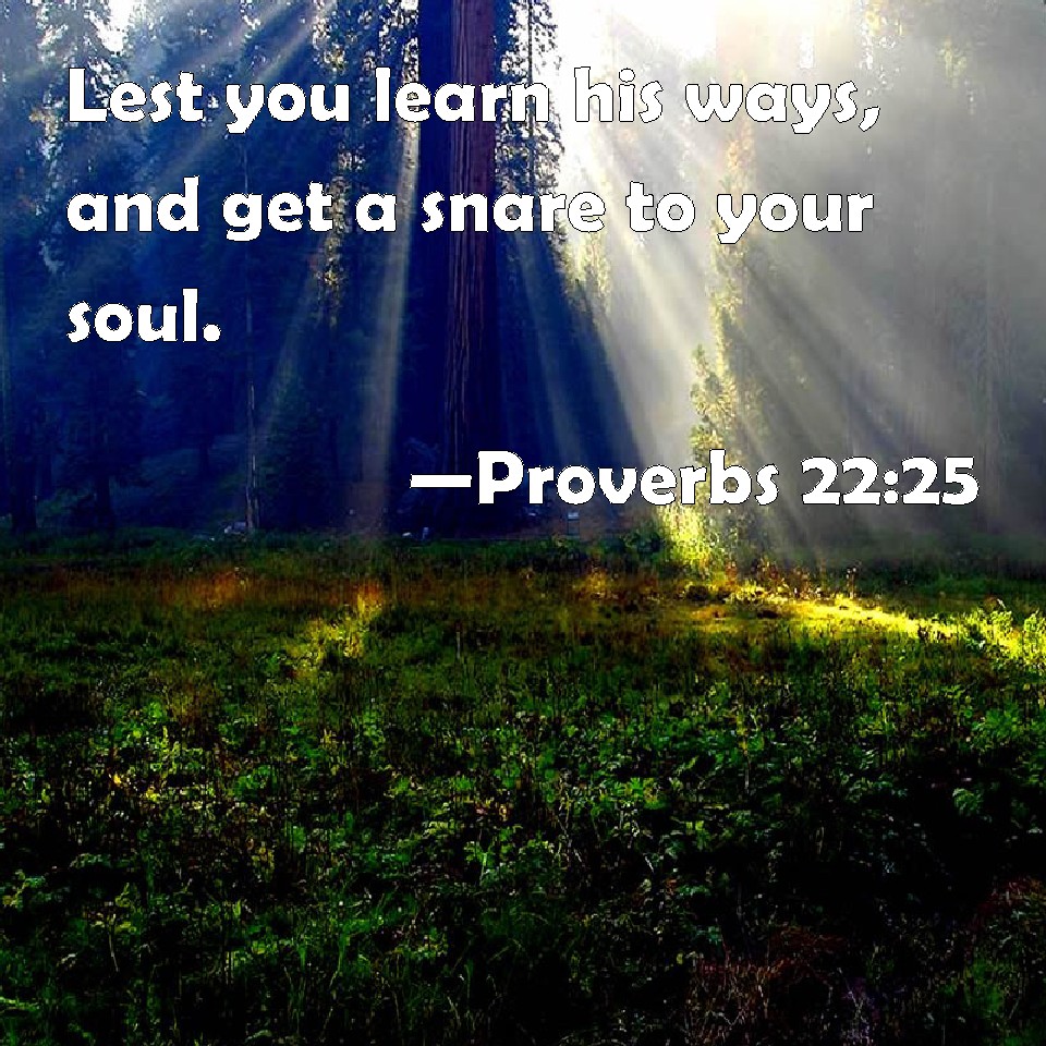 Proverbs 22:25 Lest you learn his ways, and get a snare to your soul.