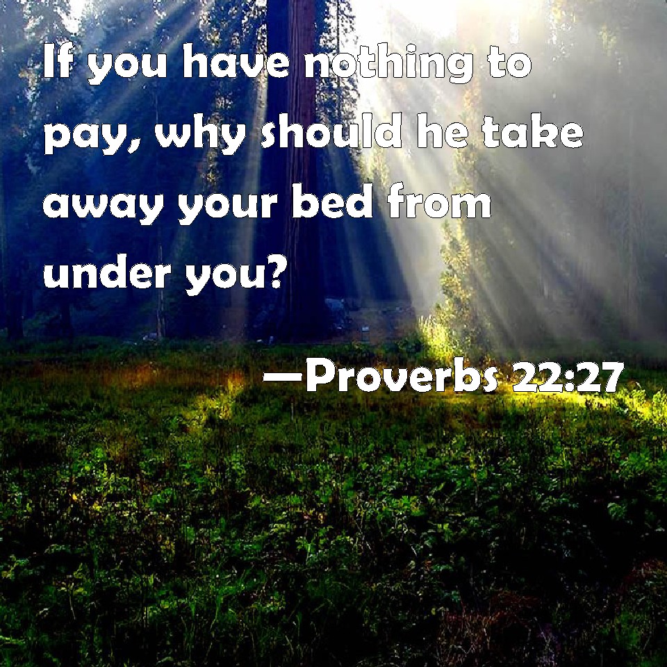 Proverbs 22:27 If you have nothing to pay, why should he take away your bed from under you?