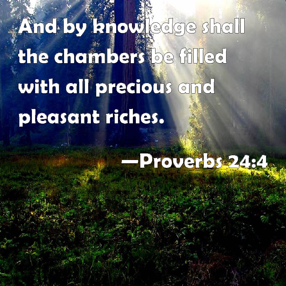 Proverbs 24:4 And by knowledge shall the chambers be filled with all precious and pleasant riches.