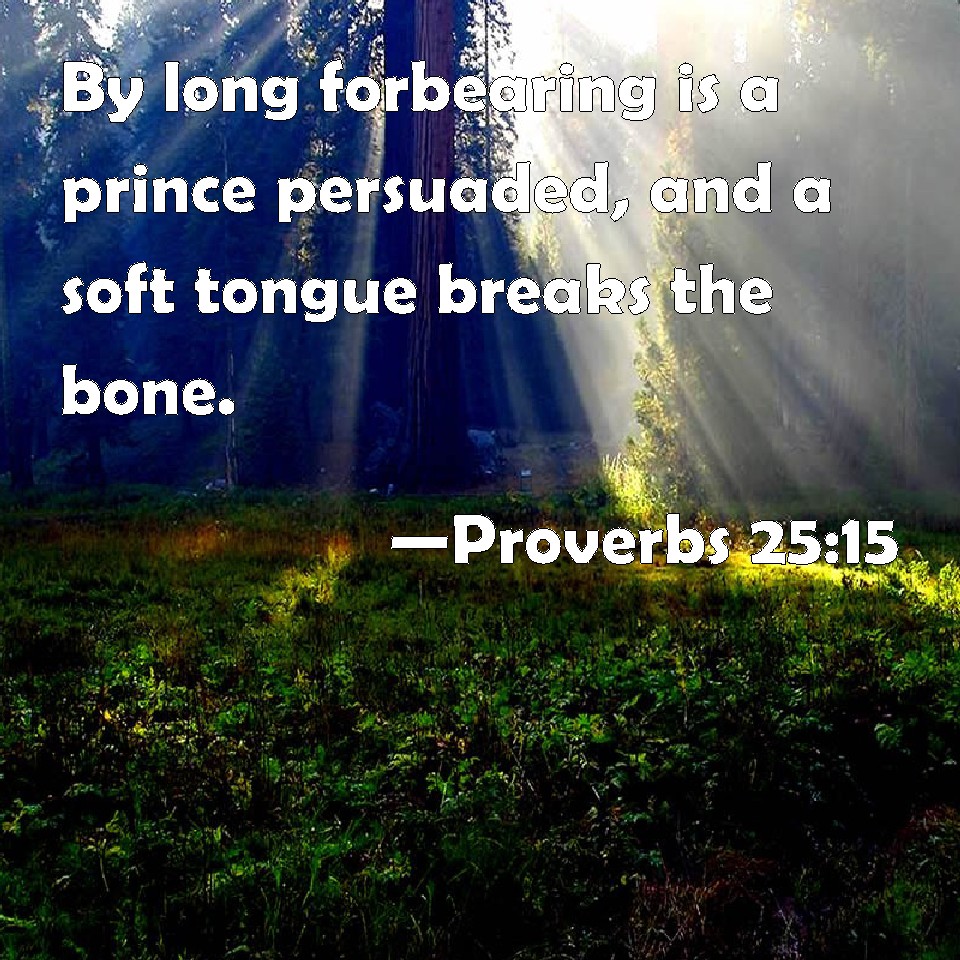 Proverbs 25:15 By long forbearing is a prince persuaded, and a soft tongue breaks the bone.