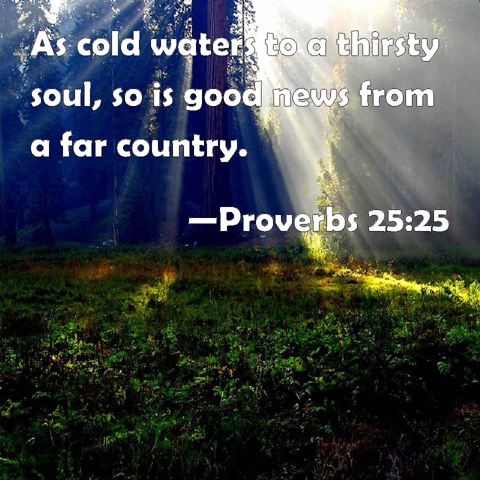 Proverbs 25:25 As cold waters to a thirsty soul, so is good news from a far country.