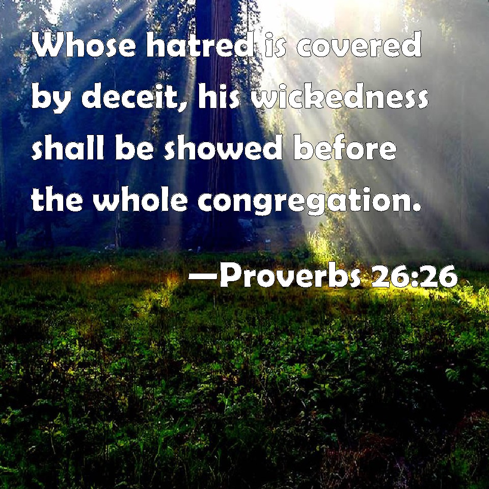 Proverbs 26:26 Whose hatred is covered by deceit, his wickedness shall be showed before the whole congregation.