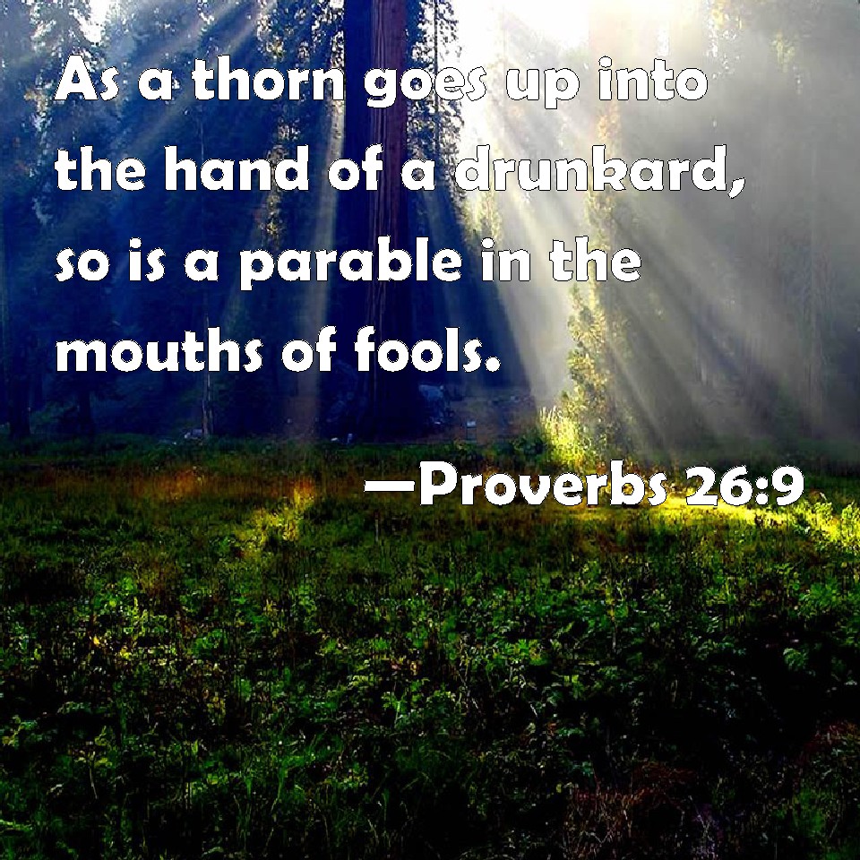 As a thorn goeth up into the hand of a drunkard, so is a proverb in the mouth of fools.