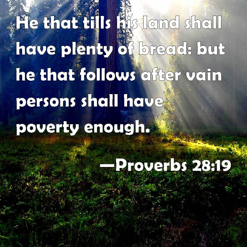 Proverbs 28:19 He that tills his land shall have plenty of bread: but he that follows after vain persons shall have poverty enough.