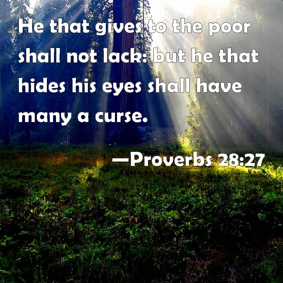 Proverbs 28:27 He that gives to the poor shall not lack: but he that hides his eyes shall have many a curse.
