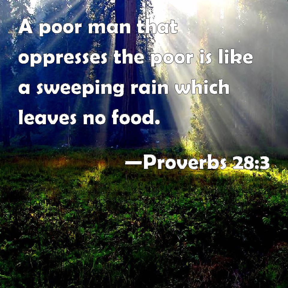 Proverbs 28:3 A poor man that oppresses the poor is like a sweeping rain which leaves no food.