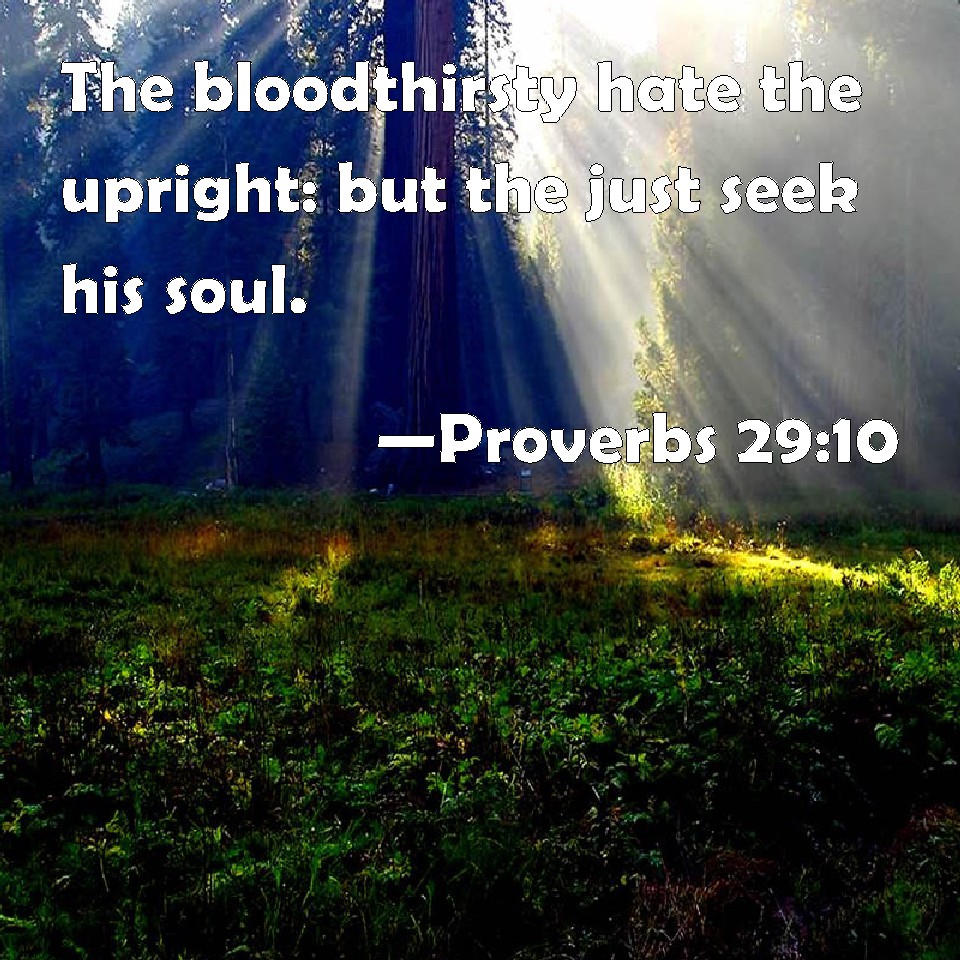 Proverbs 29:10 The bloodthirsty hate the upright: but the just seek his soul.