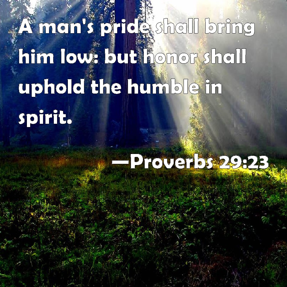 Proverbs 29:23 A man's pride shall bring him low: but honor shall uphold the humble in spirit.