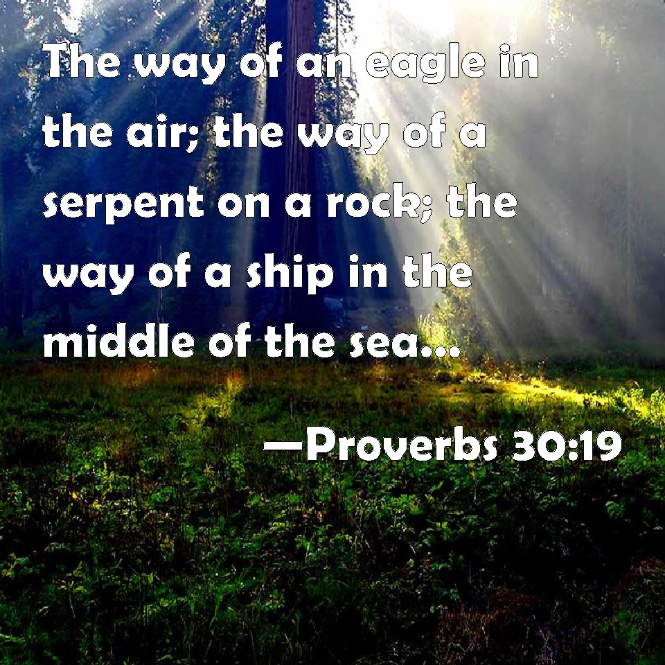 Proverbs 30:19 The way of an eagle in the air; the way of a serpent on a rock; the way of a ship in the middle of the sea; and the way of a man with a maid.