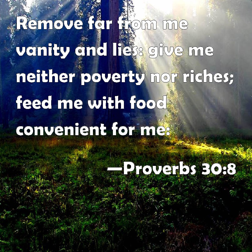 Proverbs 30:8 Remove far from me vanity and lies: give me neither poverty nor riches; feed me with food convenient for me: