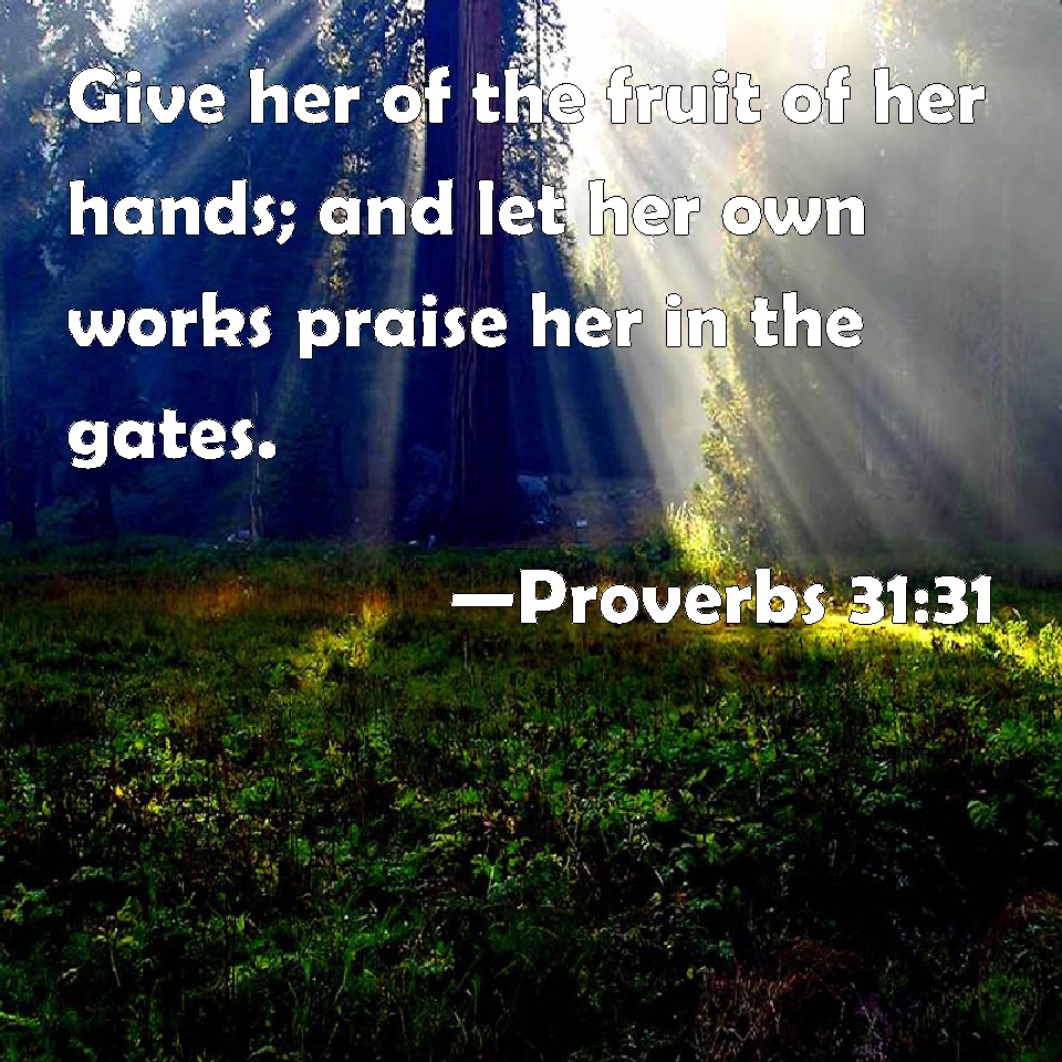 Proverbs 31:31 Give her of the fruit of her hands; and let her own works praise her in the gates.