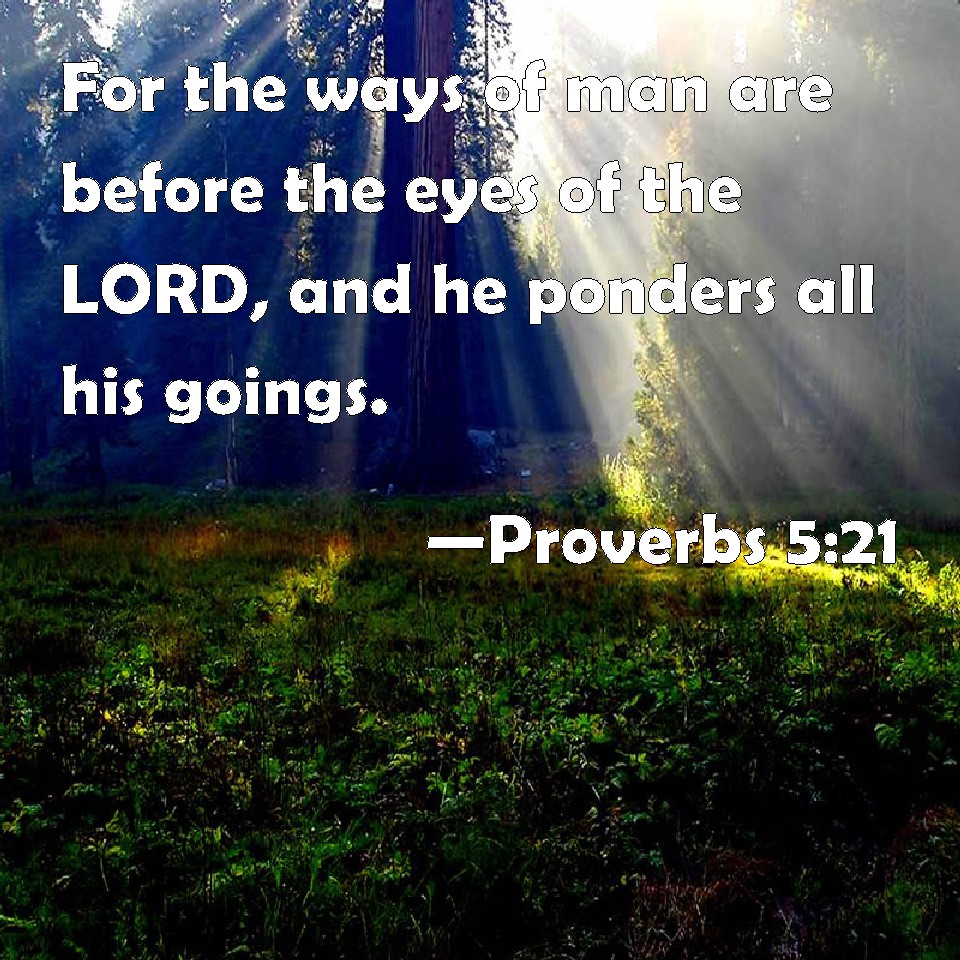 Proverbs 5:21 For the ways of man are before the eyes of the LORD, and he ponders all his goings.