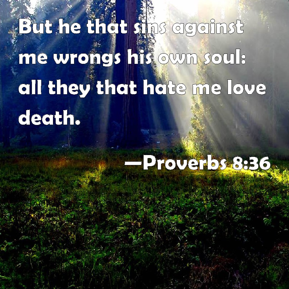 Proverbs 8:36 But he that sins against me wrongs his own soul: all they that hate me love death.
