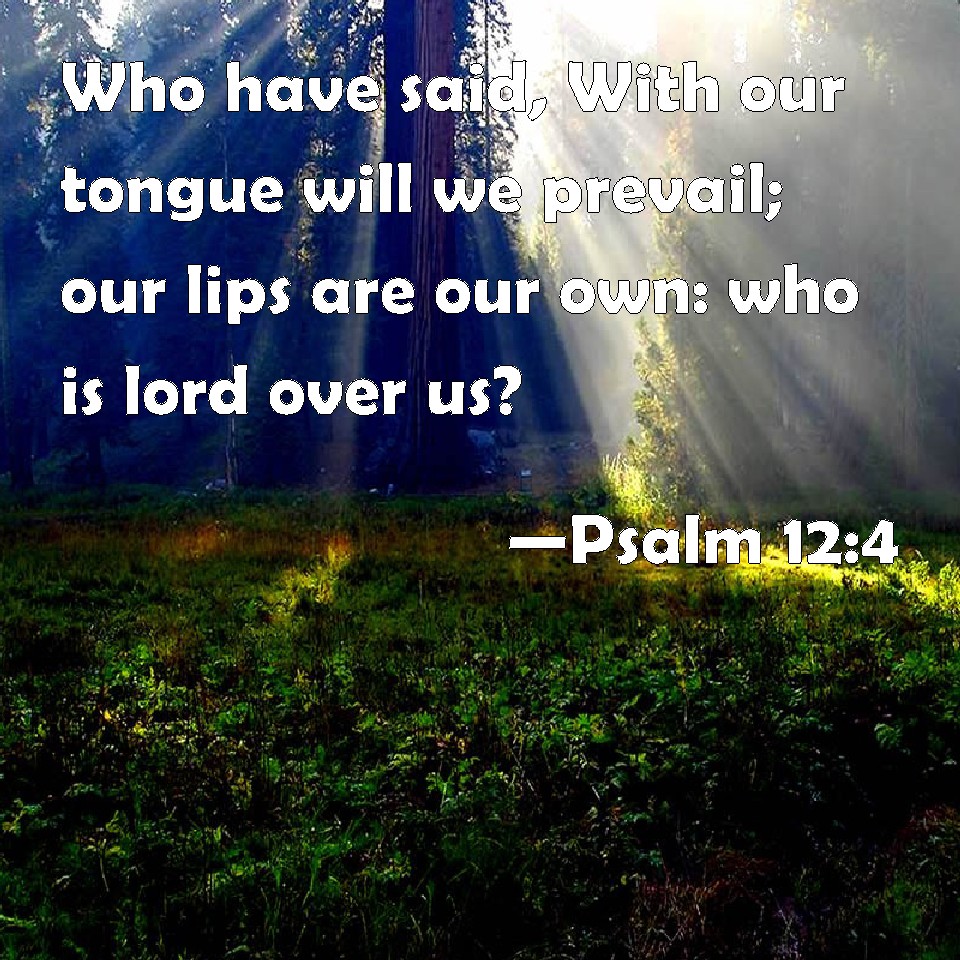 Psalm 12:4 Who have said, With our tongue will we prevail; our lips are our own: who is lord over us?