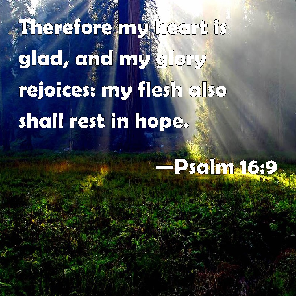 Psalm 16:9 Therefore my heart is glad, and my glory rejoices: my flesh also shall rest in hope.
