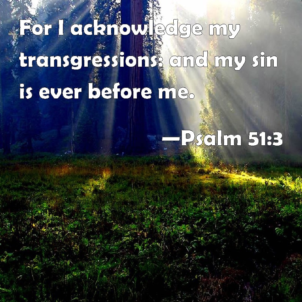 Psalm 51:3 For I acknowledge my transgressions: and my sin is ever before me.