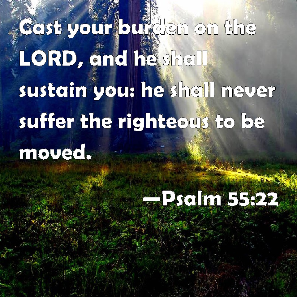 Psalm 55:22 Cast your burden on the LORD, and he shall sustain you: he shall never suffer the righteous to be moved.