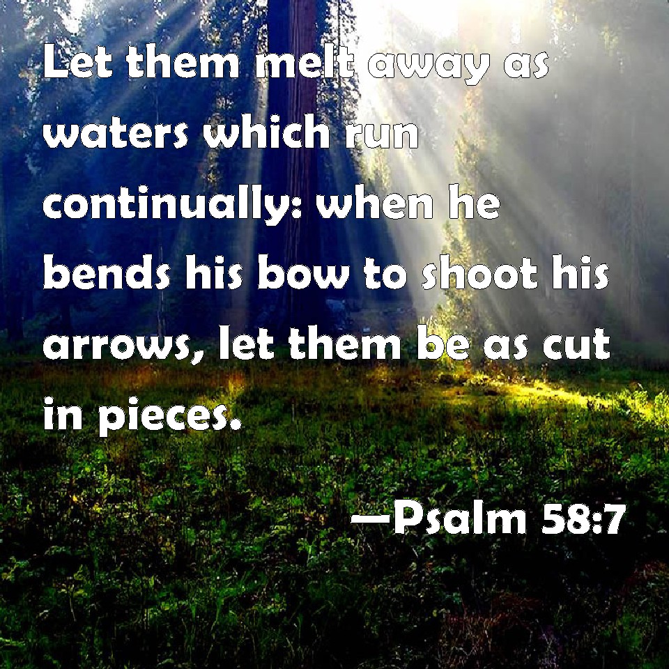 Psalm 58:7 Let them melt away as waters which run continually: when he bends his bow to shoot his arrows, let them be as cut in pieces.