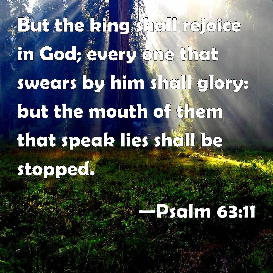Psalm 63:11 But the king shall rejoice in God; every one that swears by him shall glory: but the mouth of them that speak lies shall be stopped.