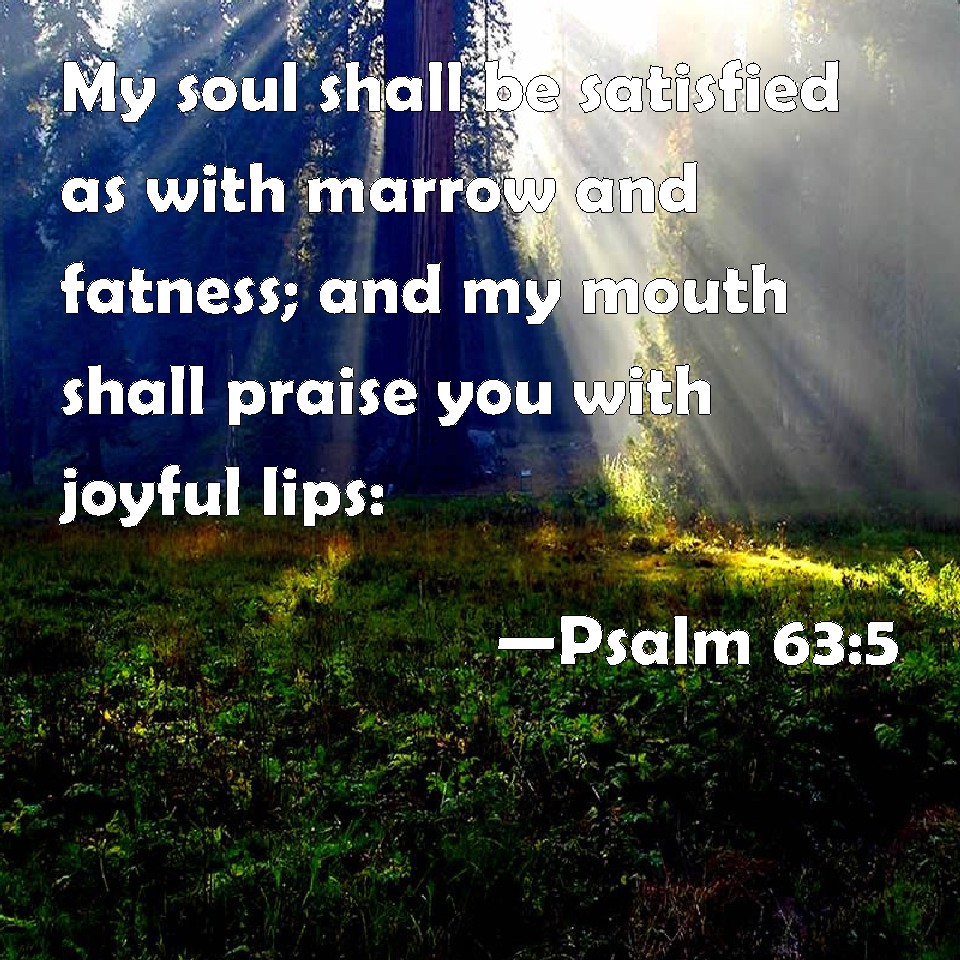 Psalm 63:5 My soul shall be satisfied as with marrow and fatness; and my mouth shall praise you with joyful lips: