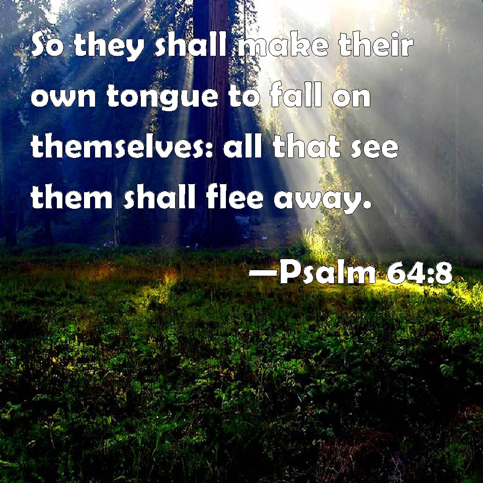 Psalm 64:8 So they shall make their own tongue to fall on themselves: all that see them shall flee away.