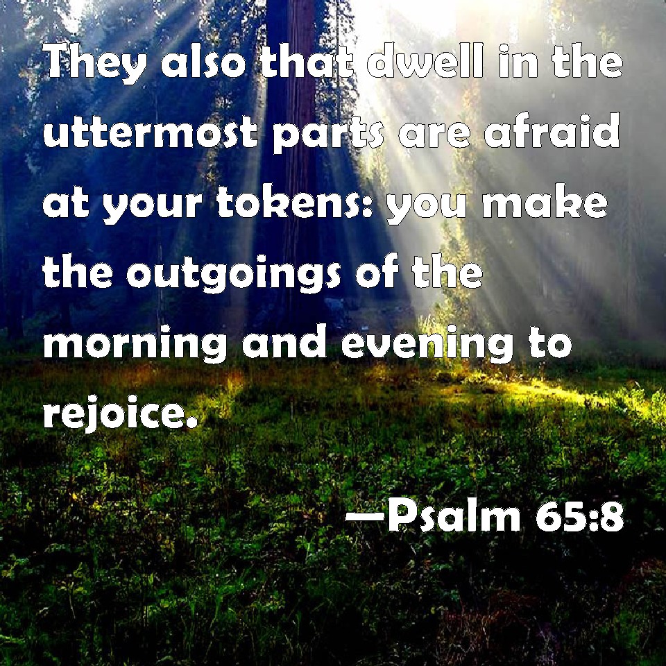 Psalm 65:8 They also that dwell in the uttermost parts are afraid at your tokens: you make the outgoings of the morning and evening to rejoice.