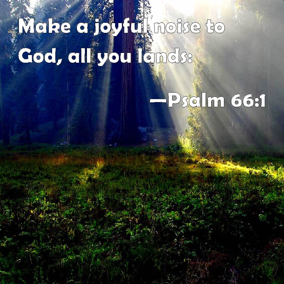 Choose a Background Psalm 66:1 Make a joyful noise to God, all you lands: KJV: {To the chief Musician, A Song or Psalm.} Make a joyful noise unto God, all ye lands: DRB: Unto the end, a canticle of a psalm of the resurrection. Shout with joy to God, all the earth, DBT: {To the chief Musician. A Song: a Psalm.} Shout aloud unto God, all the earth: ERV: For the Chief Musician. A Song, a Psalm. Make a joyful noise unto God, all the earth: WBT: To the chief Musician, A Song or Psalm. Make a joyful noise to God, all ye lands: WEB: Make a joyful shout to God, all the earth! YLT: To the Overseer. — A Song, a Psalm. Shout ye to God, all the earth.Links Psalm 66:1 NIV • Psalm 66:1 NLT • Psalm 66:1 ESV • Psalm 66:1 NASB • Psalm 66:1 KJV • Psalm 66:1 Interlinear • Psalm 66:1 Commentaries • Psalm 66:1 Parallel Texts • Psalm 66:1 Bible Apps • Psalm 66:1 Parallel • Bible Hub |