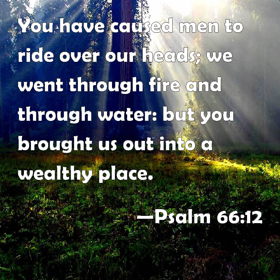 Thou hast caused men to ride over our heads; we went through fire and through water: but thou broughtest us out into a wealthy place.