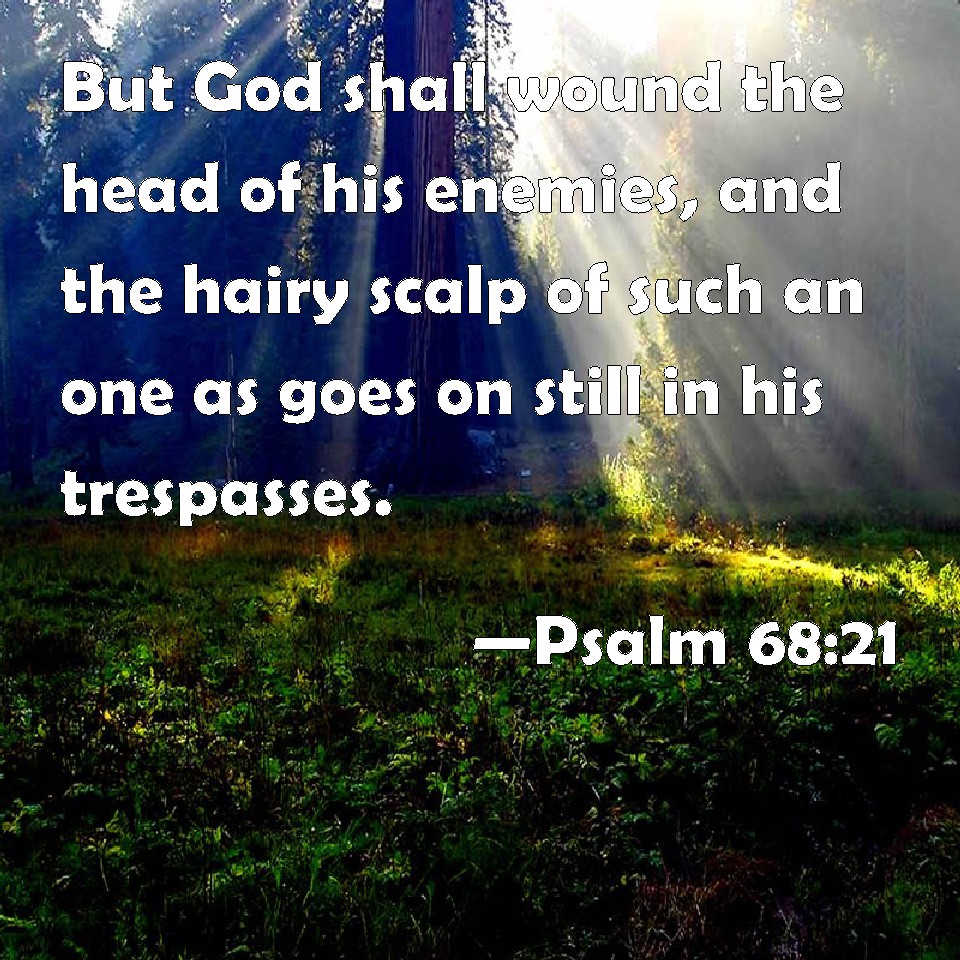 Psalm 68:21 But God shall wound the head of his enemies, and the hairy scalp of such an one as goes on still in his trespasses.