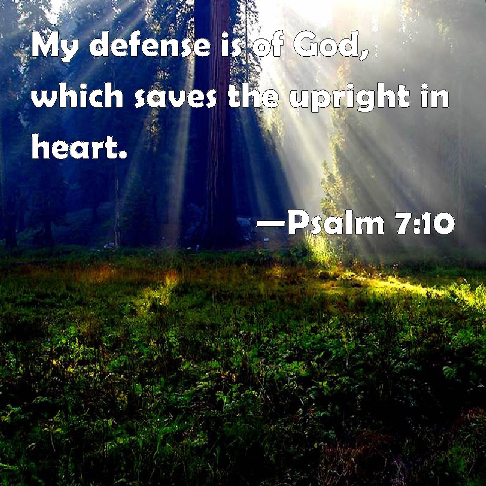 Psalm 7:10 My defense is of God, which saves the upright in heart.