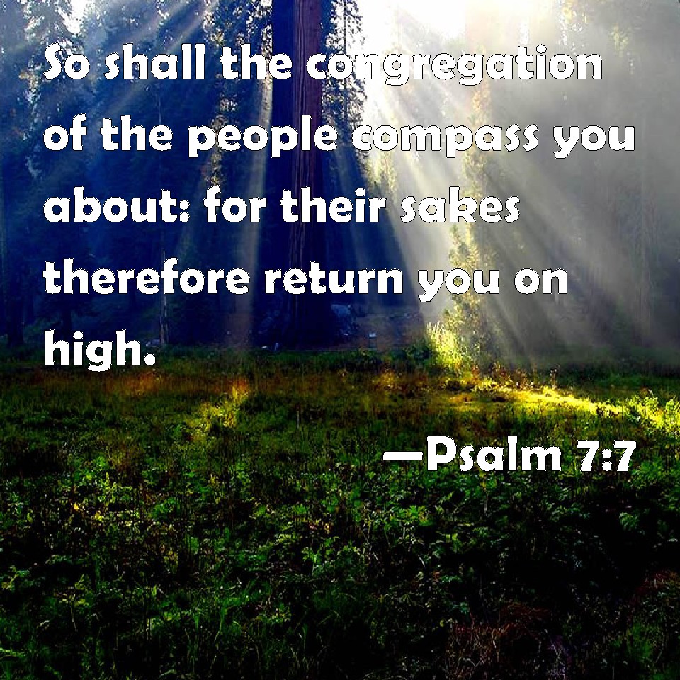 Psalm 7:7 So shall the congregation of the people compass you about: for their sakes therefore return you on high.