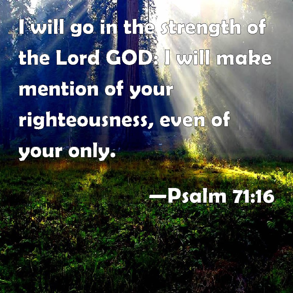 Psalm 71:16 I will go in the strength of the Lord GOD: I will make mention of your righteousness, even of your only.