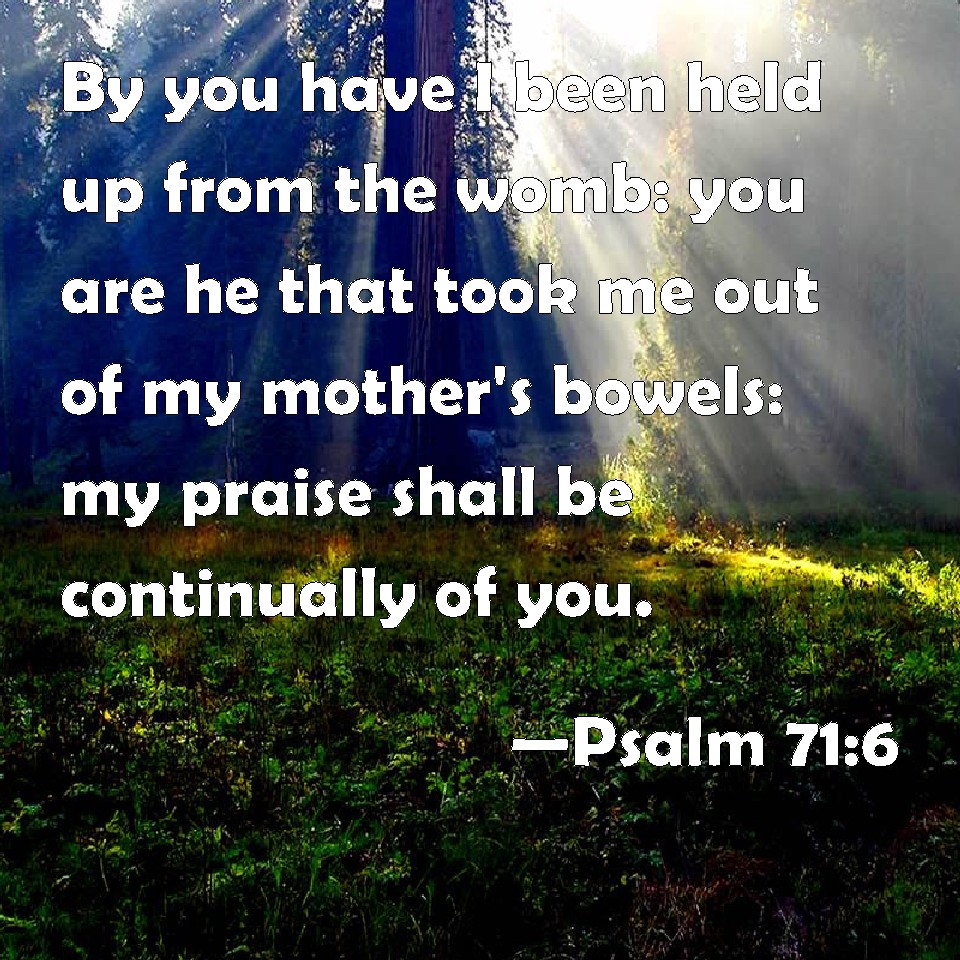 Psalm 71:6 By you have I been held up from the womb: you are he that took me out of my mother's bowels: my praise shall be continually of you.
