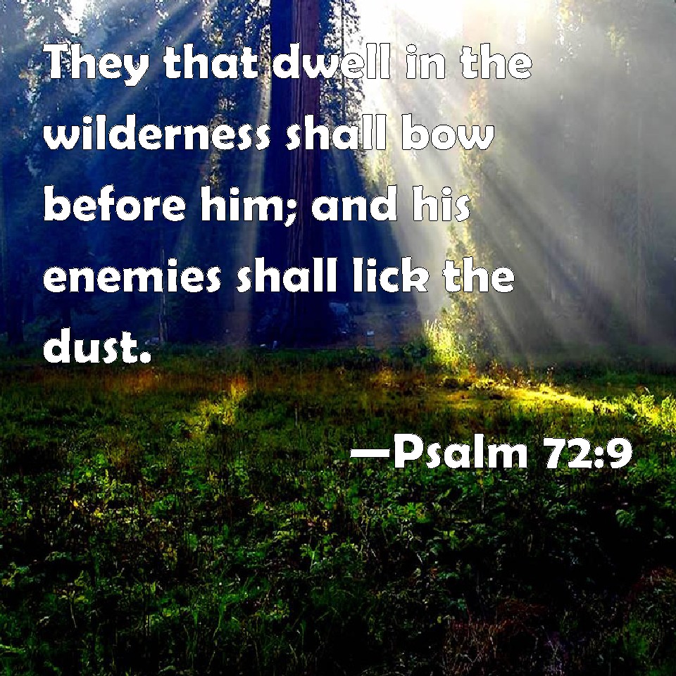 Psalm 72:9 They that dwell in the wilderness shall bow before him; and his enemies shall lick the dust.
