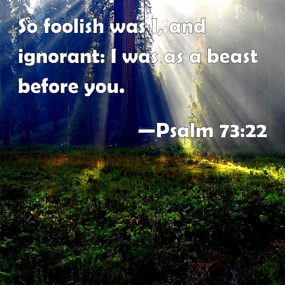 Psalm 73:22 So foolish was I, and ignorant: I was as a beast before you.