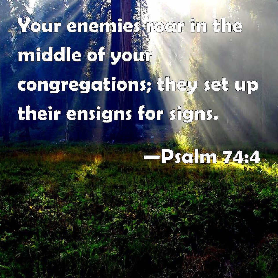 Psalm 74:4 Your enemies roar in the middle of your congregations; they set up their ensigns for signs.