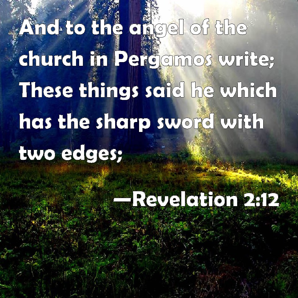 Revelation 2:12 And to the angel of the church in Pergamos write; These things said he which has the sharp sword with two edges;