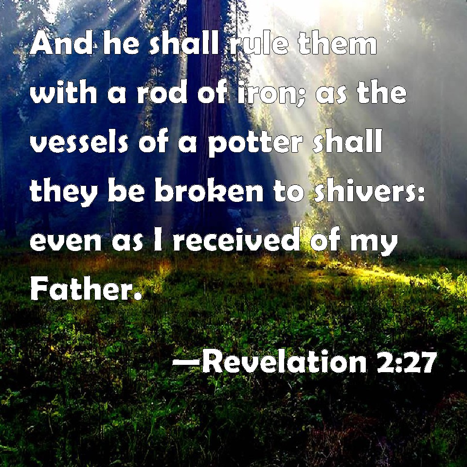 Revelation 2:27 And he shall rule them with a rod of iron; as the vessels of a potter shall they be broken to shivers: even as I received of my Father.
