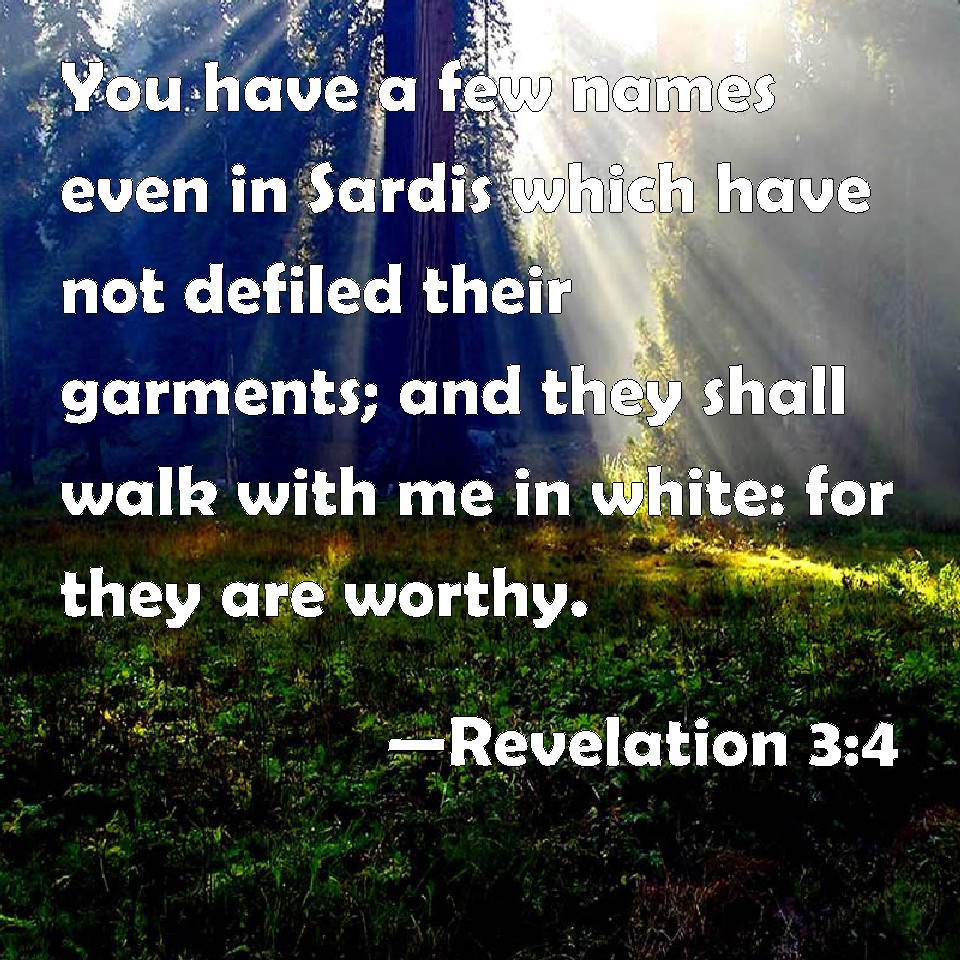 Thou hast a few names even in Sardis which have not defiled their garments; and they shall walk with me in white: for they are worthy.