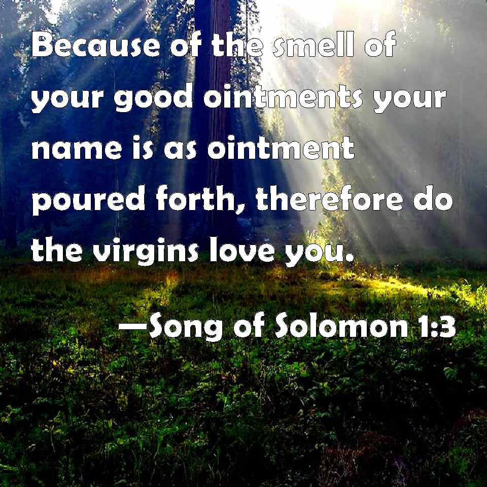 Song of Solomon 1:3 Because of the smell of your good ointments your name is as ointment poured forth, therefore do the virgins love you.