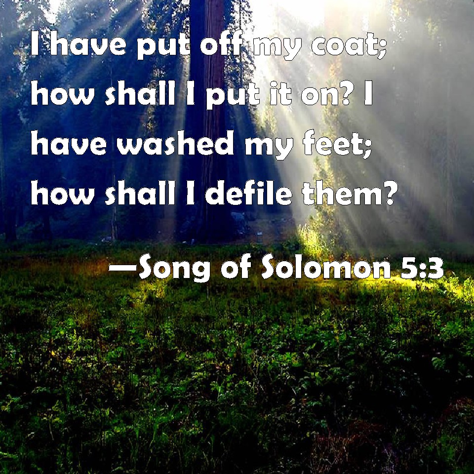 Song of Solomon 5:3 I have put off my coat; how shall I put it on? I have washed my feet; how shall I defile them?