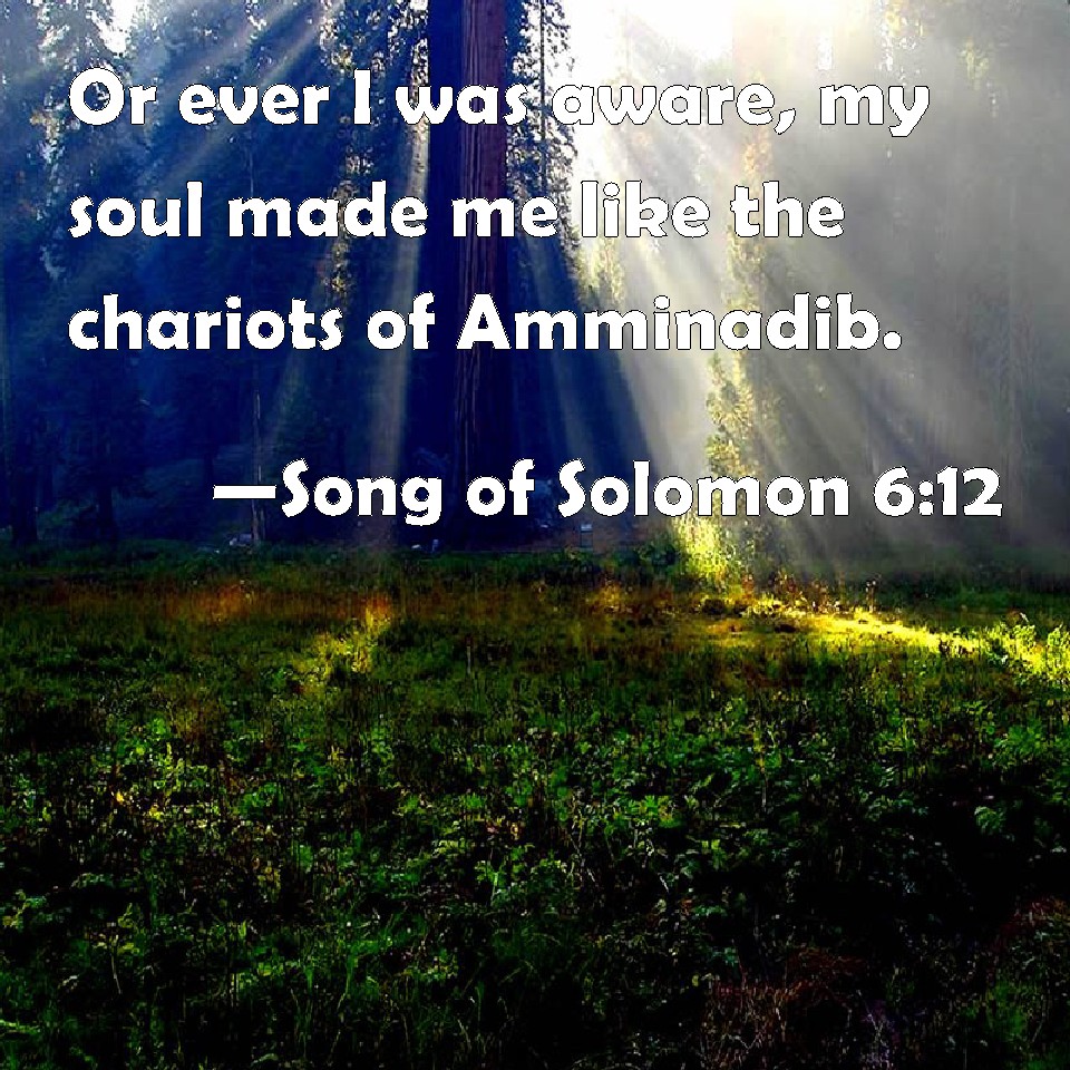 Song of Solomon 6:12 Or ever I was aware, my soul made me like the chariots of Amminadib.