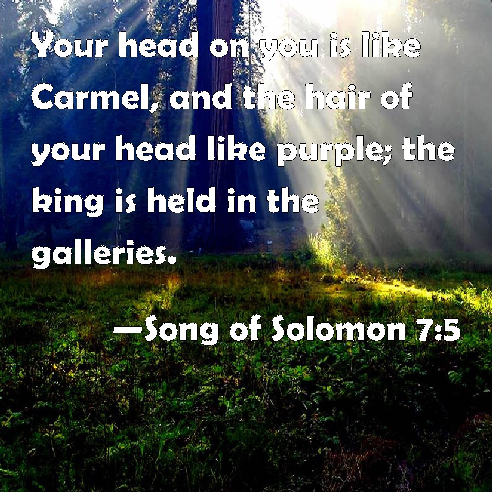 Song of Solomon 7:5 Your head on you is like Carmel, and the hair of your head like purple; the king is held in the galleries.