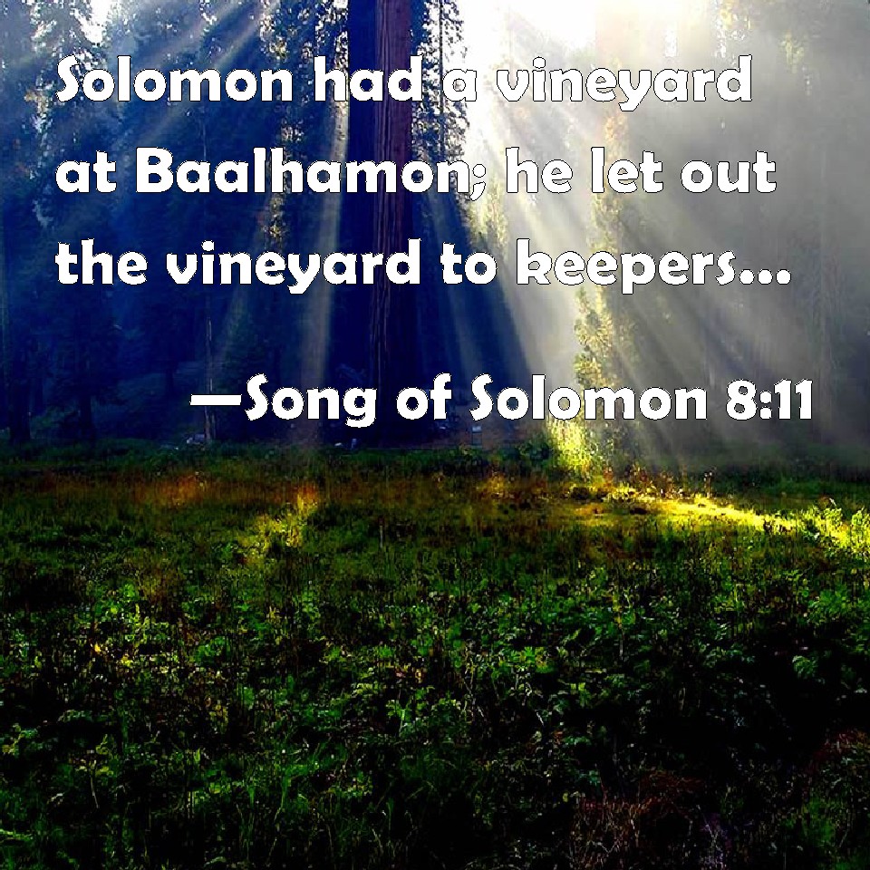 Song of Solomon 8:11 Solomon had a vineyard at Baalhamon; he let out the vineyard to keepers; every one for the fruit thereof was to bring a thousand pieces of silver.