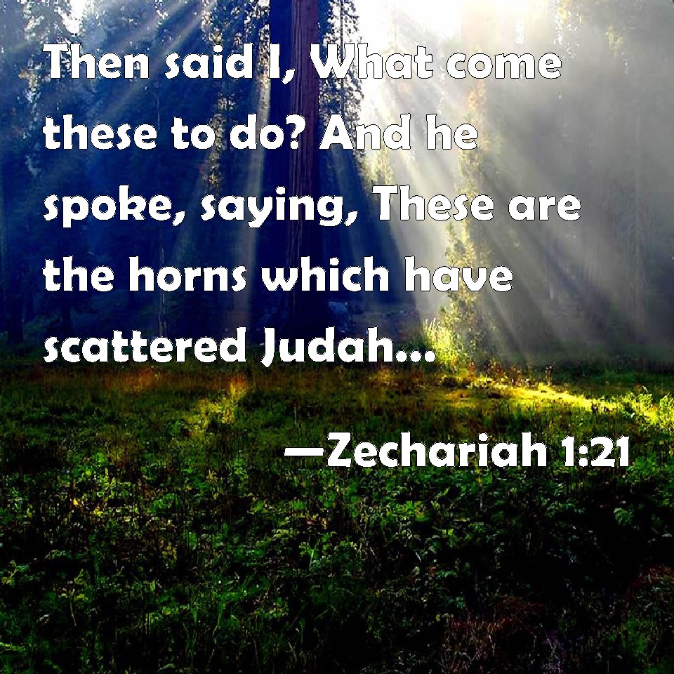 Choose a Background Zechariah 1:21 Then said I, What come these to do? And he spoke, saying, These are the horns which have scattered Judah, so that no man did lift up his head: but these are come to fray them, to cast out the horns of the Gentiles, which lifted up their horn over the land of Judah to scatter it. KJV: Then said I, What come these to do? And he spake, saying, These are the horns which have scattered Judah, so that no man did lift up his head: but these are come to fray them, to cast out the horns of the Gentiles, which lifted up their horn over the land of Judah to scatter it. DRB: And I said: What come these to do? and he spoke, saying: These are the horns which have scattered Juda every man apart, and none of them lifted up his head: and these are come to fray them, to cast down the horns of the nations, that have lifted up the horn upon the land of Juda to scatter it. DBT: And I said, What come these to do? And he spoke, saying, Those are the horns which scattered Judah, so that no man lifted up his head; but these are come to affright them, to cast out the horns of the nations, which lifted up the horn against the land of Judah to scatter it. ERV: Then said I, What come these to do? And he spake, saying, These are the horns which scattered Judah, so that no man did lift up his head: but these are come to fray them, to cast down the horns of the nations, which lifted up their horn against the land of Judah to scatter it. WBT: Then said I, What come these to do? And he spoke, saying, These are the horns which have scattered Judah, so that no man lifted up his head: but these are come to terrify them, to cast down the horns of the Gentiles, which lifted their horn over the land of Judah to scatter it. WEB: Then I asked, "What are these coming to do?" He said, "These are the horns which scattered Judah, so that no man lifted up his head; but these have come to terrify them, to cast down the horns of the nations, which lifted up their horn against the land of Judah to scatter it." YLT: And I say, 'What are these coming in to do?' And He speaketh, saying: 'These are the horns that have scattered Judah, so that no one hath lifted up his head, and these come in to trouble them, to cast down the horns of the nations who are lifting up a horn against the land of Judah — to scatter it.'Links Zechariah 1:21 NIV • Zechariah 1:21 NLT • Zechariah 1:21 ESV • Zechariah 1:21 NASB • Zechariah 1:21 KJV • Zechariah 1:21 Interlinear • Zechariah 1:21 Commentaries • Zechariah 1:21 Parallel Texts • Zechariah 1:21 Bible Apps • Zechariah 1:21 Parallel • Bible Hub |