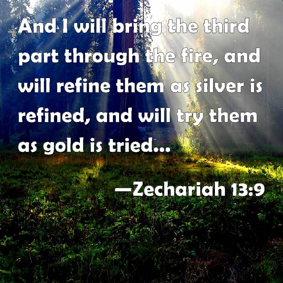 Choose a Background Zechariah 13:9 And I will bring the third part through the fire, and will refine them as silver is refined, and will try them as gold is tried: they shall call on my name, and I will hear them: I will say, It is my people: and they shall say, The LORD is my God. KJV: And I will bring the third part through the fire, and will refine them as silver is refined, and will try them as gold is tried: they shall call on my name, and I will hear them: I will say, It is my people: and they shall say, The LORD is my God. DRB: And I will bring the third part through the fire, and will refine them as silver is refined: and I will try them as gold is tried. They shall call on my name, and I will hear them. I will say: Thou art my people: and they shall say: The Lord is my God. DBT: And I will bring the third part into the fire, and will refine them as silver is refined, and will try them as gold is tried. They shall call on my name, and I will answer them: I will say, It is my people; and they shall say, Jehovah is my God. ERV: And I will bring the third part through the fire, and will refine them as silver is refined, and will try them as gold is tried: they shall call on my name, and I will hear them: I will say, It is my people; and they shall say, The LORD is my God. WBT: And I will bring the third part through the fire, and will refine them as silver is refined, and will try them as gold is tried: they shall call on my name, and I will hear them: I will say, It is my people; and they shall say, The LORD is my God. WEB: I will bring the third part into the fire, and will refine them as silver is refined, and will test them like gold is tested. They will call on my name, and I will hear them. I will say, 'It is my people;' and they will say, 'Yahweh is my God.'" YLT: And I have brought the third into fire, And refined them like a refining of silver, And have tried them like a trying of gold, It doth call in My name, and I answer it, I have said, 'My people it is,' And it saith, 'Jehovah is my God!'Links Zechariah 13:9 NIV • Zechariah 13:9 NLT • Zechariah 13:9 ESV • Zechariah 13:9 NASB • Zechariah 13:9 KJV • Zechariah 13:9 Interlinear • Zechariah 13:9 Commentaries • Zechariah 13:9 Parallel Texts • Zechariah 13:9 Bible Apps • Zechariah 13:9 Parallel • Bible Hub |
