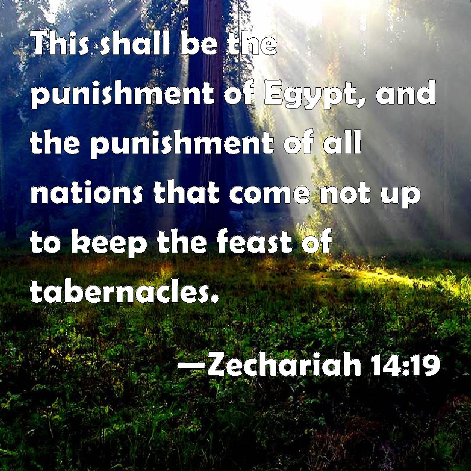 Choose a Background Zechariah 14:19 This shall be the punishment of Egypt, and the punishment of all nations that come not up to keep the feast of tabernacles. KJV: This shall be the punishment of Egypt, and the punishment of all nations that come not up to keep the feast of tabernacles. DRB: This shall be the sin of Egypt, and this the sin of all nations, that will not go up to keep the feast of tabernacles. DBT: This shall be the punishment of Egypt, and the punishment of all the nations that go not up to celebrate the feast of tabernacles. ERV: This shall be the punishment of Egypt, and the punishment of all the nations that go not up to keep the feast of tabernacles. WBT: This shall be the punishment of Egypt, and the punishment of all nations that come not up to keep the feast of tabernacles. WEB: This will be the punishment of Egypt, and the punishment of all the nations that don't go up to keep the feast of tents. YLT: This is the punishment of the sin of Egypt, And the punishment of the sin of all the nations, That go not up to celebrate the feast of booths.Links Zechariah 14:19 NIV • Zechariah 14:19 NLT • Zechariah 14:19 ESV • Zechariah 14:19 NASB • Zechariah 14:19 KJV • Zechariah 14:19 Interlinear • Zechariah 14:19 Commentaries • Zechariah 14:19 Parallel Texts • Zechariah 14:19 Bible Apps • Zechariah 14:19 Parallel • Bible Hub |