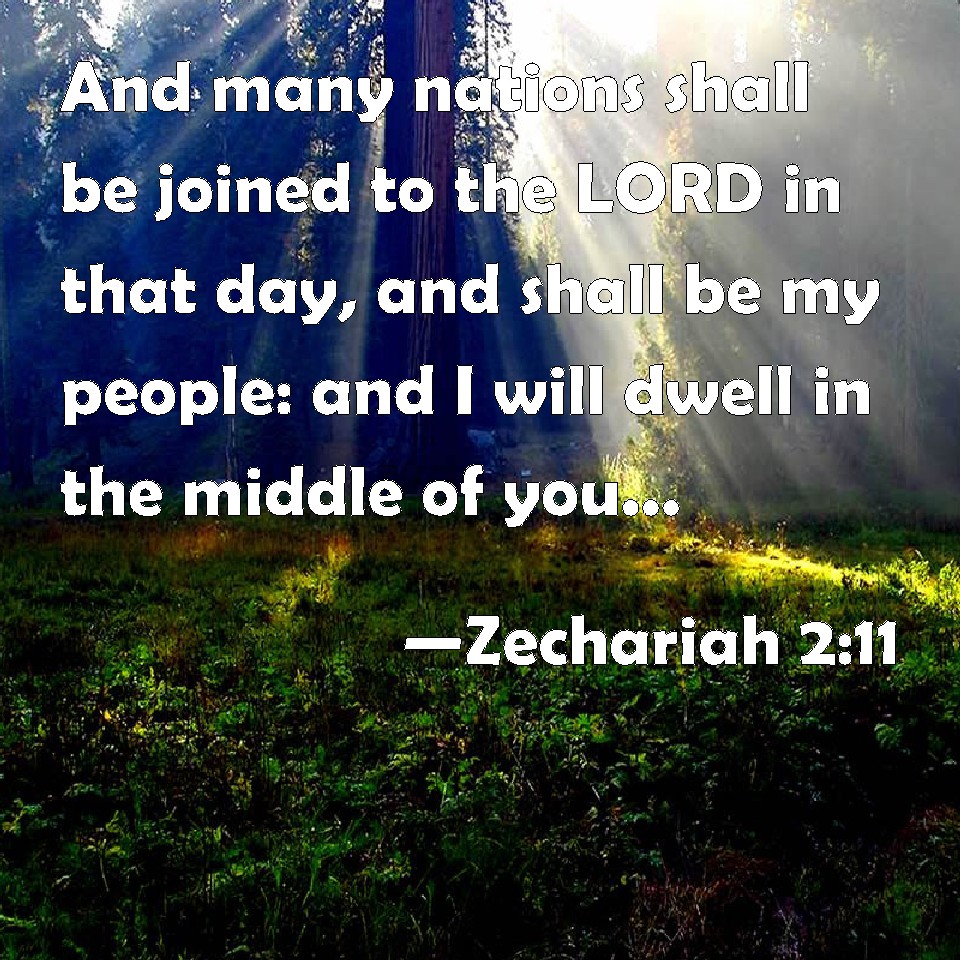 Choose a Background Zechariah 2:11 And many nations shall be joined to the LORD in that day, and shall be my people: and I will dwell in the middle of you, and you shall know that the LORD of hosts has sent me to you. KJV: And many nations shall be joined to the LORD in that day, and shall be my people: and I will dwell in the midst of thee, and thou shalt know that the LORD of hosts hath sent me unto thee. DRB: And many nations shall be joined to the Lord in that day, and they shall be my people, and I will dwell in the midst of thee: and thou shalt know that the Lord of hosts hath sent me to thee. DBT: And many nations shall join themselves to Jehovah in that day, and shall be unto me for a people; and I will dwell in the midst of thee, and thou shalt know that Jehovah of hosts hath sent me unto thee. ERV: And many nations shall join themselves to the LORD in that day, and shall be my people: and I will dwell in the midst of thee, and thou shalt know that the LORD of hosts hath sent me unto thee. WBT: And many nations shall be joined to the LORD in that day, and shall be my people: and I will dwell in the midst of thee, and thou shalt know that the LORD of hosts hath sent me to thee. WEB: Many nations shall join themselves to Yahweh in that day, and shall be my people; and I will dwell in the midst of you, and you shall know that Yahweh of Armies has sent me to you. YLT: And joined have been many nations unto Jehovah in that day, And they have been to Me for a people, And I have dwelt in thy midst, And thou hast known that Jehovah of Hosts hath sent me unto thee.Links Zechariah 2:11 NIV • Zechariah 2:11 NLT • Zechariah 2:11 ESV • Zechariah 2:11 NASB • Zechariah 2:11 KJV • Zechariah 2:11 Interlinear • Zechariah 2:11 Commentaries • Zechariah 2:11 Parallel Texts • Zechariah 2:11 Bible Apps • Zechariah 2:11 Parallel • Bible Hub |